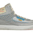 The Air Jordan 2 Union Grey Fog features a grey canvas upper with matching perforated suede overlays and mudguards. Light blue eyelets, eyestay patches, and piping add a pop of color. Matching tongues with a yellowed woven tag and exposed foam edges offer a worn-in look to this futuristic design.