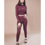 LADIES' CROPPED HIGH NECKLINE & JOGGERS SET - BURGUNDY
