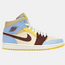 This Jordan 1 Mid SE is composed of a cream, brown, yellow, and light blue leather upper with red stitching on the heels and tongues. Maison Chateau Rouge branding on the heel tabs, sail midsoles, and yellow outsoles complete the design. These sneakers released in November of 2019.