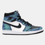The Jordan 1 Retro High Tie Dye consists of a white and black leather upper with blue and green tie-dye print leather overlays. A black Swoosh, white midsole, and black outsole complete the design. This Jordan 1 Tie Dye released in June of 2020.