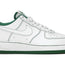 Welle Applies Pine Green Contrast Stitching On The Air Force 1, while matching hits complement along the tongue's branding as well as the cloth of the lining. Treads follow suit replete with its embossed stars forward, while the upper's core leather construction builds a neutral foundation in optical white. Get these classic pine green AF1 today !