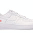 Supreme and Nike paid homage to an NYC classic with the release of the Nike Air Force 1 Low Supreme White, now available. This collaboration adds Supremeโs world-renowned Box Logo to the side of a traditional all-white Air Force 1 design. This Air Force 1 Low is comprised of an all-white leather upper with matching soles and detailing. A red Supreme Box Logo placed on the outside heel and alternate red branded 3M laces complete the design. These sneakers released in March of 2020