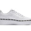 Arriving in white, the shoe boasts a premium tumbled leather upper with a debossed leather tongue patch. ... That's not all though: the shoe also features abstract heel detailing and more branding on the laces — repeating swooshes on the white pair, and “SWOOSH” text hits on the beige.