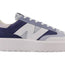 Meet the New Balance Indigo Dusk Blue. This low-cut court-inspired upper shows off a synthetic fabric and suede construction. The wavy rubber toe caps, the laces and the oversized, asymmetrical “N” on both the medial and lateral sides of the shoe are white.